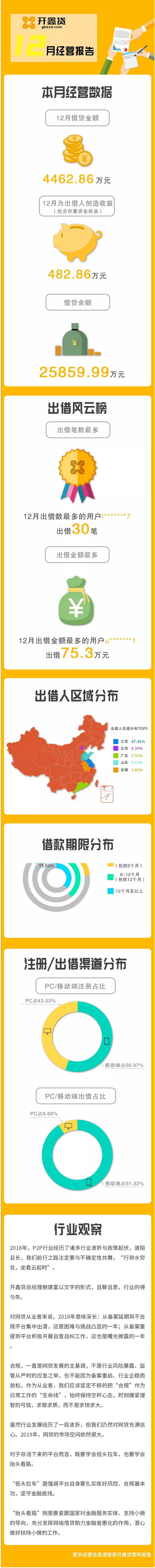 开鑫贷2018年12月经营报告!「官方披露」