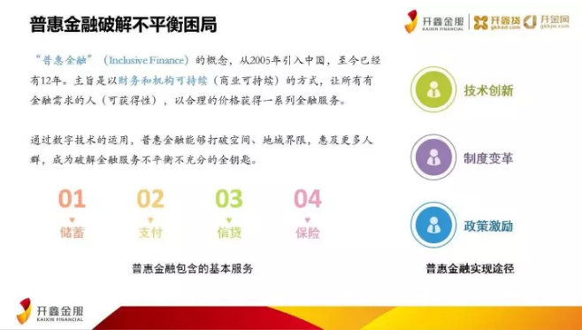 这里面有几个关键词,第一个,以可负担的成本。当前虽然说我们的互联网金融也好,个人金融也好,服务是非常丰富的,但是我觉得成本依然有降低的空间,特别是在大家利用大数据风控把不良率控制在相当低的情况下,成本应该要有所降低。当移动支付已经覆盖了全国百分之八九十市场的时候,规模应该体现,成本也应该有下降的空间。