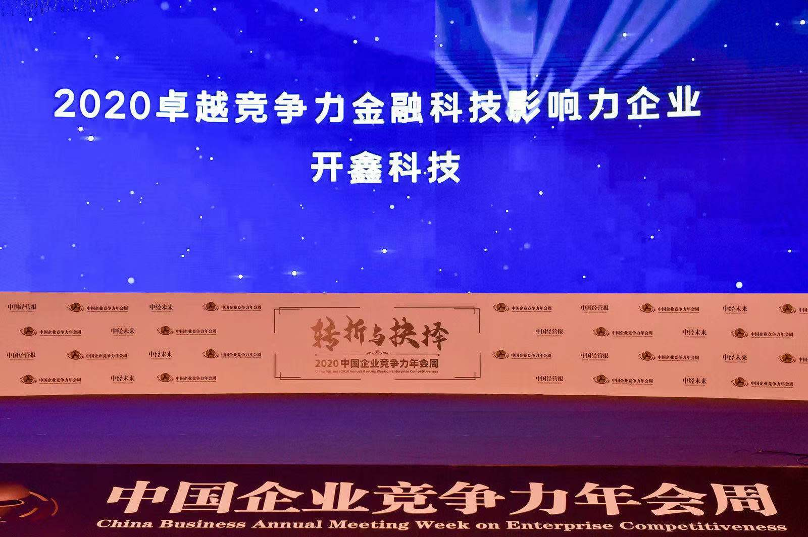2020年11月23日,由《中国经营报》和中经未来主办的2020中国企业竞争力年会周盛大开幕。本届年会周覆盖多个行业,深入分析2021年中国经济将迎来的机遇和挑战,助推各行各业在变量之中寻找新的契机,突破商业边界,激荡创新思维,求索未来发展之道!面对世界百年未有之大变局,推动形成以国内大循环为主体、国内国际“双循环”相互促进的新发展格局,是未来一段时期我国经济发展的首要任务,也是“十四五”时期金融改革发展的着眼点,金融如何助力加快形成“双循环”新发展格局亦成为金融领域关注的焦点。在11月23日举行的“2020卓越竞争力金融峰会”上,多位经济领域知名学者及金融机构高管汇聚一堂,共议经济“双循环”新发展格局中,金融改革与创新的核心力量。在同期举行的“第十二届卓越竞争力金融机构评选”颁奖盛典上,开鑫科技荣膺“2020卓越竞争力金融科技影响力企业”。